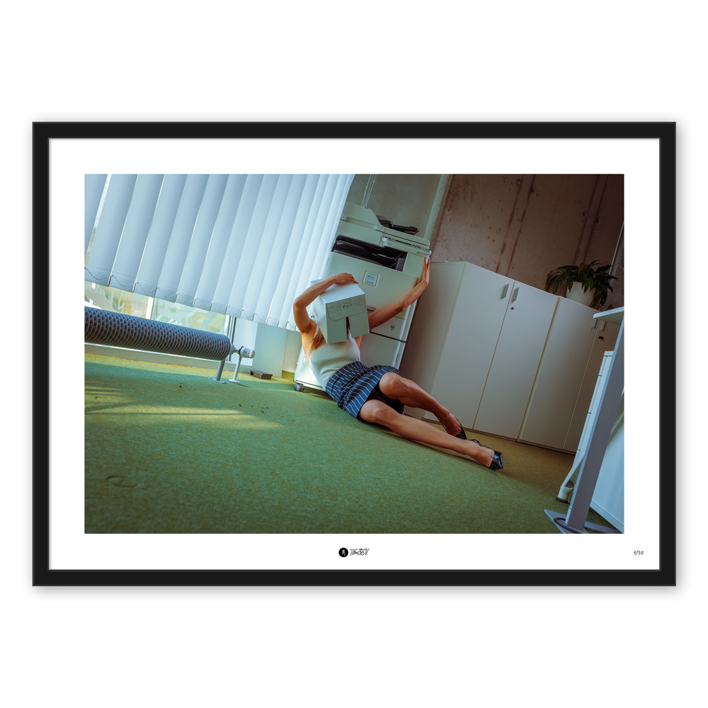 Overtime is a photograph from the series The Office working with the feelings of loneliness of a person who is trapped in a corporate work environment from which he cannot escape. The photograph was created in 2022.